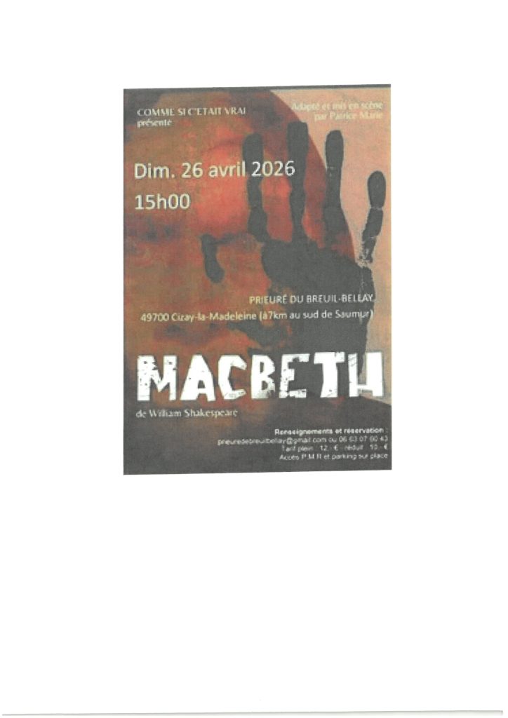 Evénement au Breuil Bellay Dimanche 26 avril 2026 à 15h00 – MACBETH